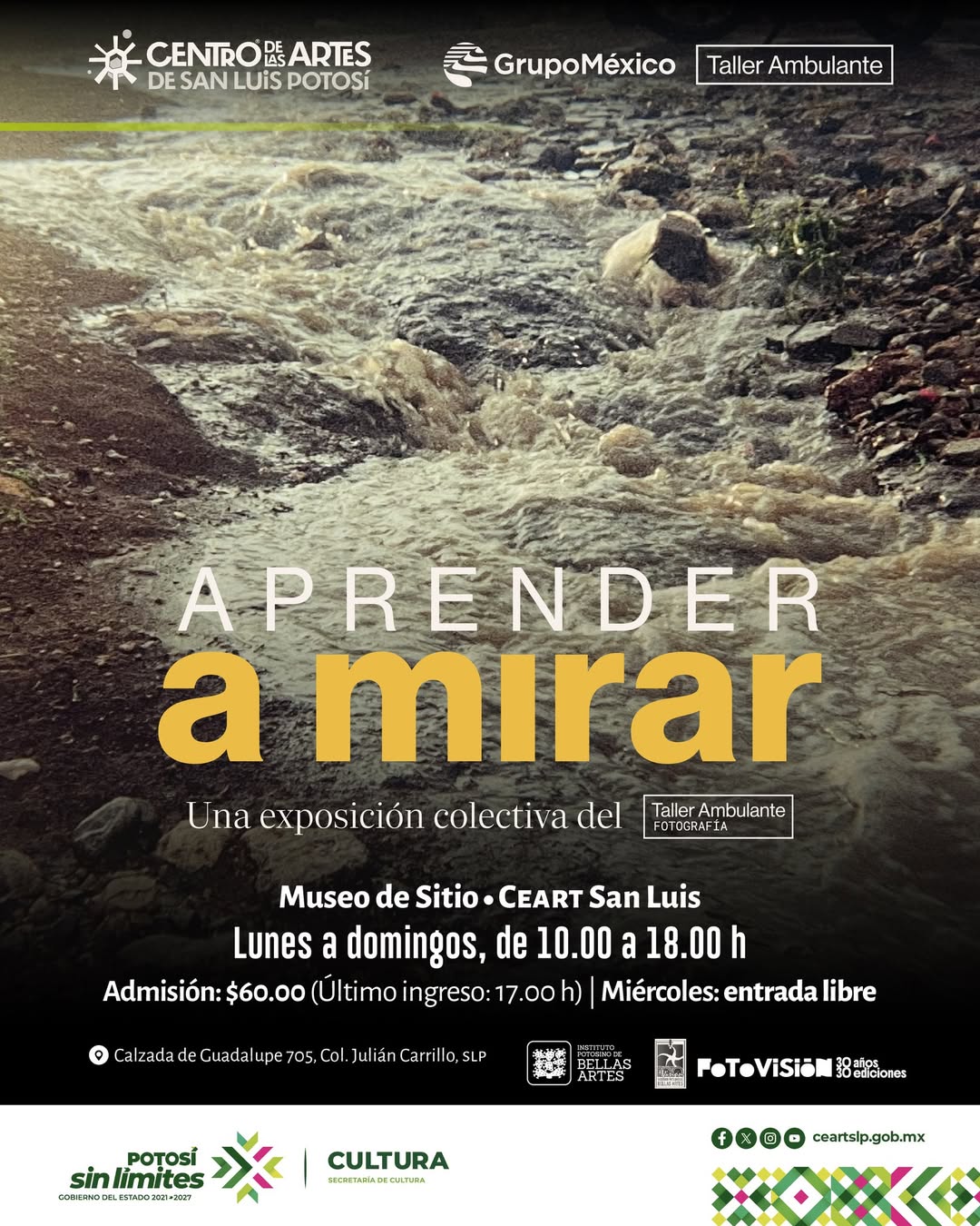 El Museo de Sitio del Centro de las Artes de San Luis Potosí (CEART) alberga la exposición colectiva “Aprender a mirar”, una muestra del Taller Ambulante de Fotografía que invita al público a reflexionar sobre la imagen, la mirada y la forma en que se construyen las narrativas visuales.