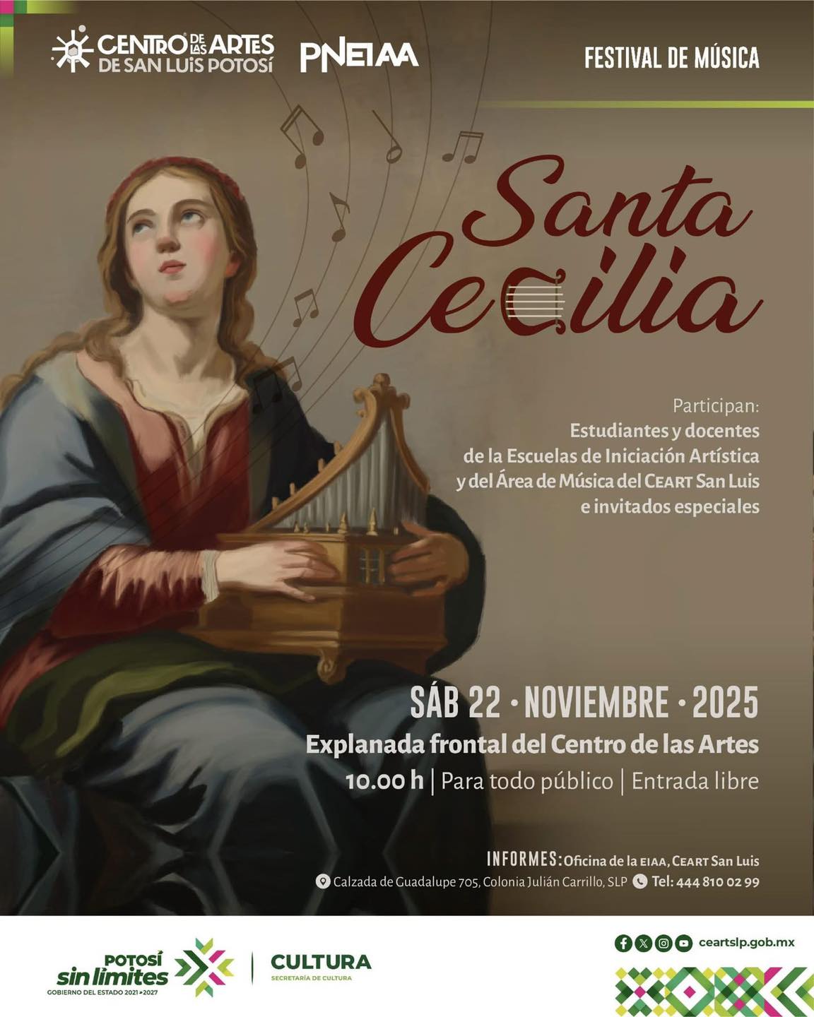 Este 22 de noviembre, el Centro de las Artes de San Luis Potosí (Ceart) se convirtió en el punto de encuentro para la celebración del Festival de Santa Cecilia, una jornada dedicada a reconocer la creatividad, el talento joven y las expresiones musicales que mantienen viva la tradición artística en el estado.