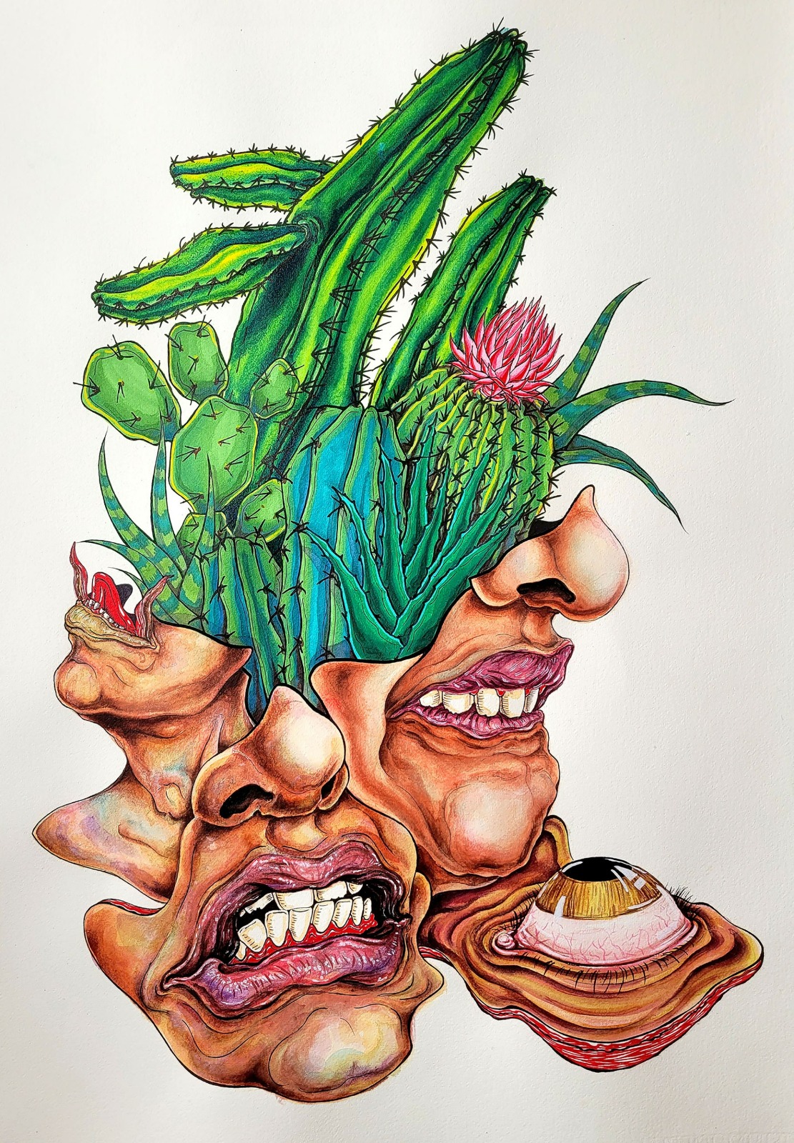 Por su parte, Eduardo Castillo (1982) es un artista visual con una sólida trayectoria en ilustración, dibujo, acuarela, pintura al óleo, muralismo y serigrafía, centrando su obra en la exploración del comportamiento humano y las emociones. Licenciado en Artes Plásticas por la Escuela Estatal de Artes Plásticas y Maestro en Docencia en Educación Superior por la Universidad Tangamanga, ha presentado nueve exposiciones individuales y participado en más de 50 colectivas dentro y fuera del país, entre ellas en la Affordable Art Fair de Nueva York (2012). Su trabajo forma parte de acervos institucionales y ha sido publicado en revistas como Ars Luma, RGB y Babel. Entre sus reconocimientos destacan la Beca PECDA 2023, el Premio Raúl Gamboa (2013) y la Beca Jóvenes Creadores FECA (2011). Actualmente es profesor investigador de tiempo completo en la Universidad Autónoma de San Luis Potosí.