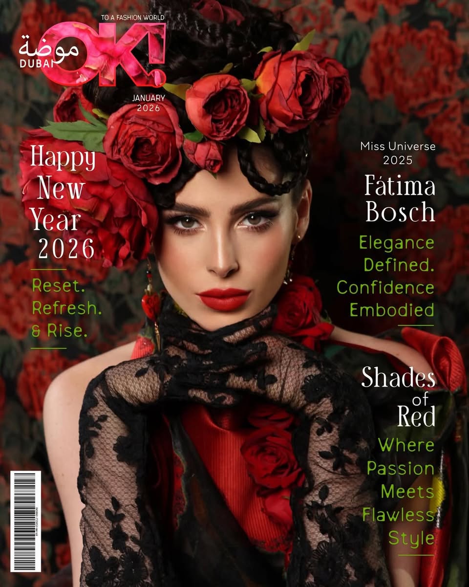 El arranque del Año Nuevo 2026 se viste de glamour con la presencia de Fátima Boch, Miss Universo 2025, quien protagoniza la portada de la revista OK! Dubái, una de las publicaciones de estilo y celebridades más influyentes del Medio Oriente.