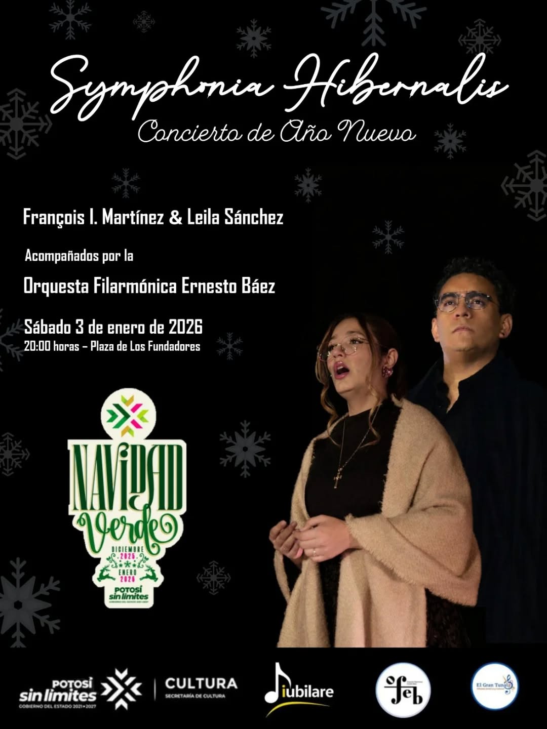 San Luis Potosí iniciará el año 2026 con una celebración musical al aire libre gracias a la segunda fecha del concierto “Symphonia Hibernalis. Concierto de Año Nuevo”, que se llevará a cabo el sábado 3 de enero, a las 20:00 horas, en la Plaza de los Fundadores.