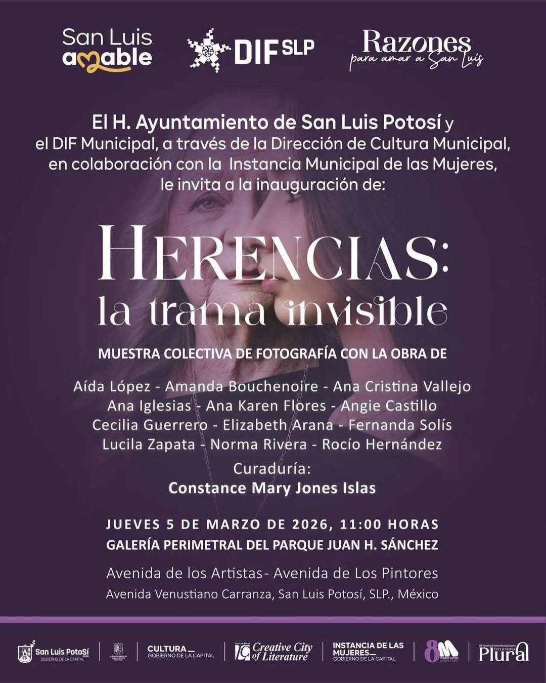 La exposición es organizada por el H. Ayuntamiento de San Luis Potosí y el DIF Municipal, a través de la Dirección de Cultura Municipal, en colaboración con la Instancia Municipal de las Mujeres, como parte de las actividades culturales que promueven el reconocimiento y la visibilización de las mujeres en el ámbito artístico.
