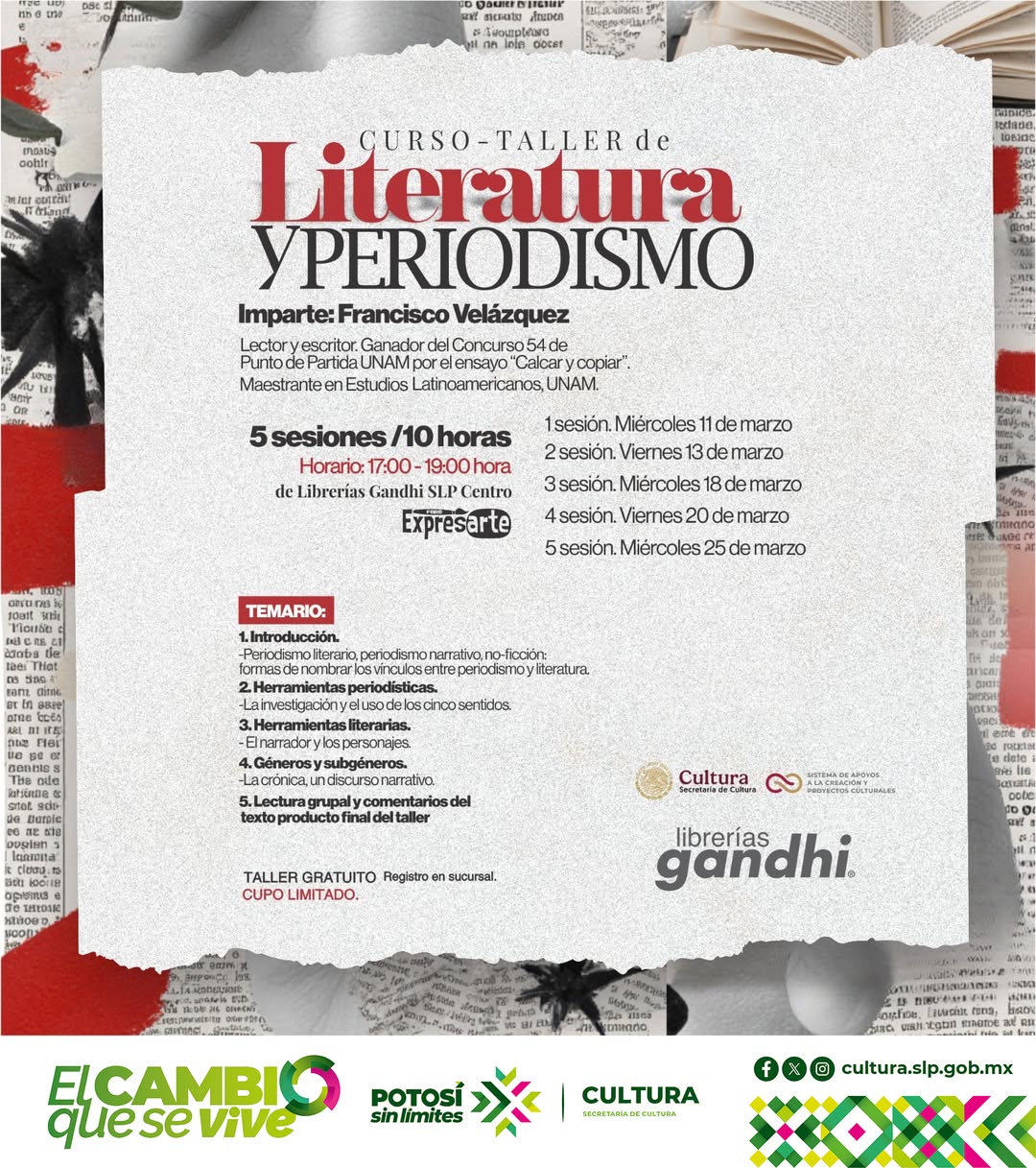 La actividad será gratuita y con cupo limitado, por lo que las personas interesadas en fortalecer su escritura, su mirada crítica y su capacidad narrativa podrán realizar su registro directamente en la sucursal de Librerías Gandhi SLP Centro para asegurar su lugar.