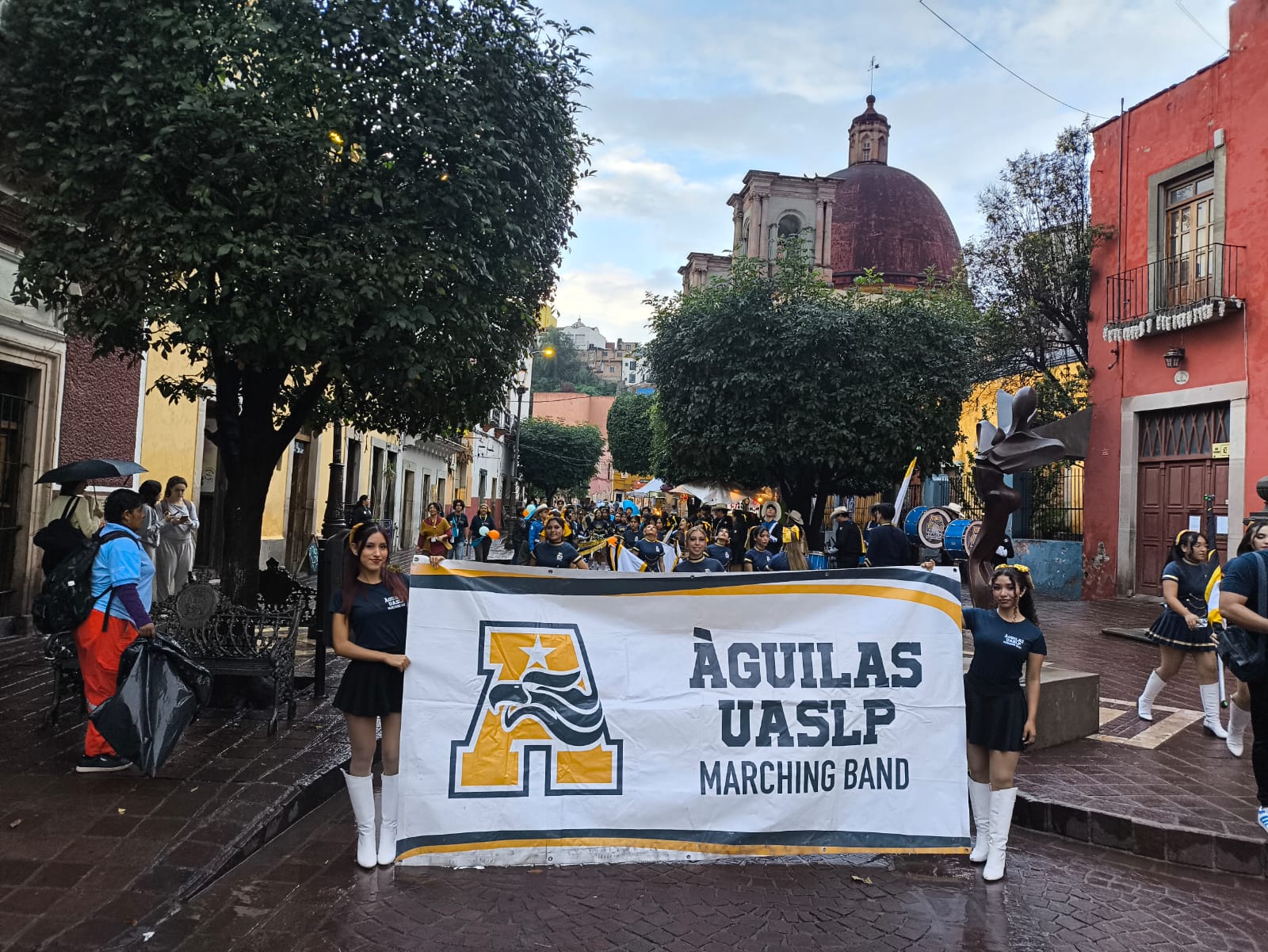 En el marco de la Universiada Cervantina 2025, la Universidad Autónoma de San Luis Potosí (UASLP) destacó con la participación de la Marching Band de la Facultad de Estudios Profesionales Zona Huasteca, quienes llevaron alegría, ritmo y tradición a las calles de Guanajuato.
