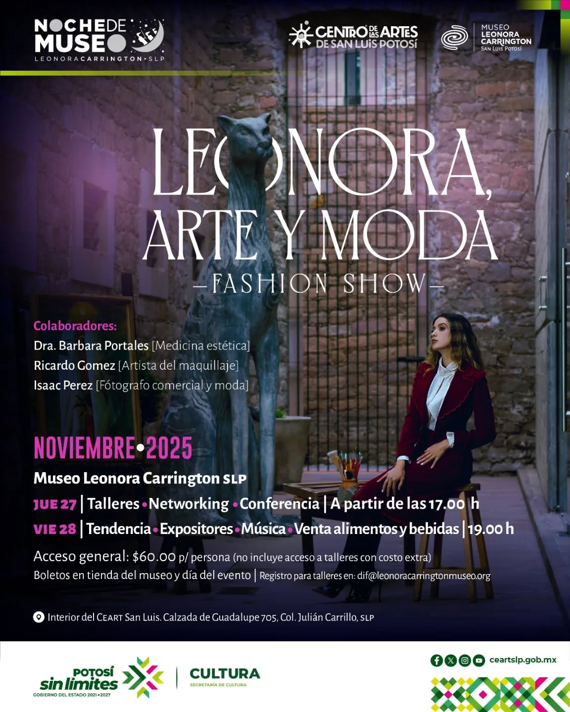 El Museo Leonora Carrington de San Luis Potosí será sede este 27 y 28 de noviembre de “Leonora, Arte y Moda”, un encuentro que reunirá diseño, creatividad y visión contemporánea en torno a la obra y el imaginario de la célebre artista surrealista.