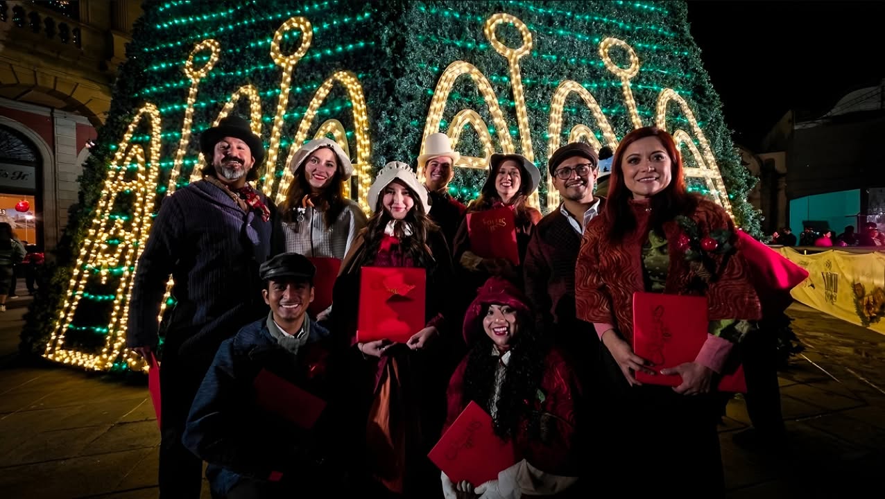 El Centro Histórico de San Luis Potosí se transformó la noche de ayer en un escenario lleno de música, relatos y ambiente navideño, gracias a la presentación de Los Carolers, agrupación que cautivó al público con su talento y cercanía.