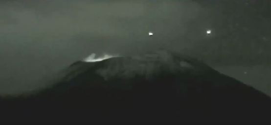 Nuevamente, cámaras de vigilancia y usuarios en redes sociales reportaron la presencia de múltiples objetos de naturaleza desconocida cerca del volcán Popocatépetl, en el centro de México.