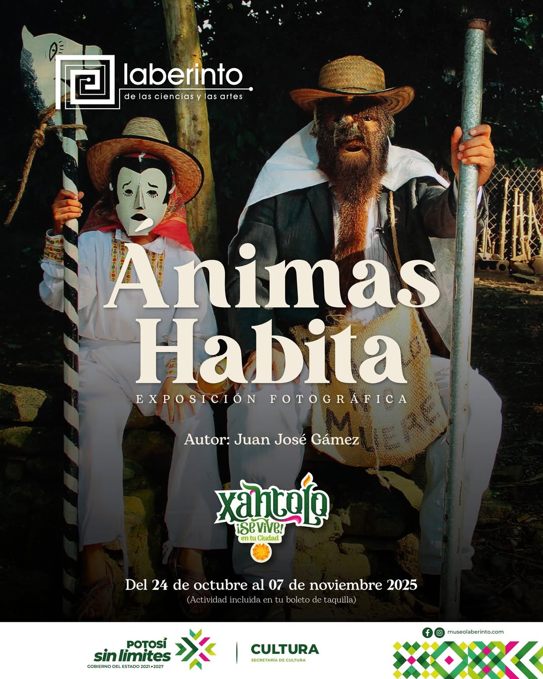 En el marco del festival Xantolo se Vive en tu Ciudad, el Museo Laberinto de las Ciencias y las Artes presenta la exposición fotográfica “Ánimas habita”, del artista Juan José Gámez, una muestra que invita a sumergirse en la riqueza simbólica y cultural de la Huasteca Potosina.