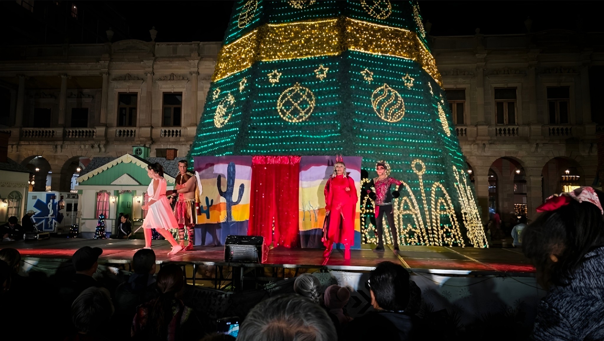 La Plaza de los Fundadores fue escenario de la puesta en escena de la pastorela “La apuesta”, una propuesta mágica, cómica y musical que reunió a familias potosinas en torno a una de las tradiciones más representativas de la temporada decembrina. La función ofreció una tarde llena de risas, música y mensajes alusivos a la Navidad, en un ambiente de convivencia y celebración comunitaria.