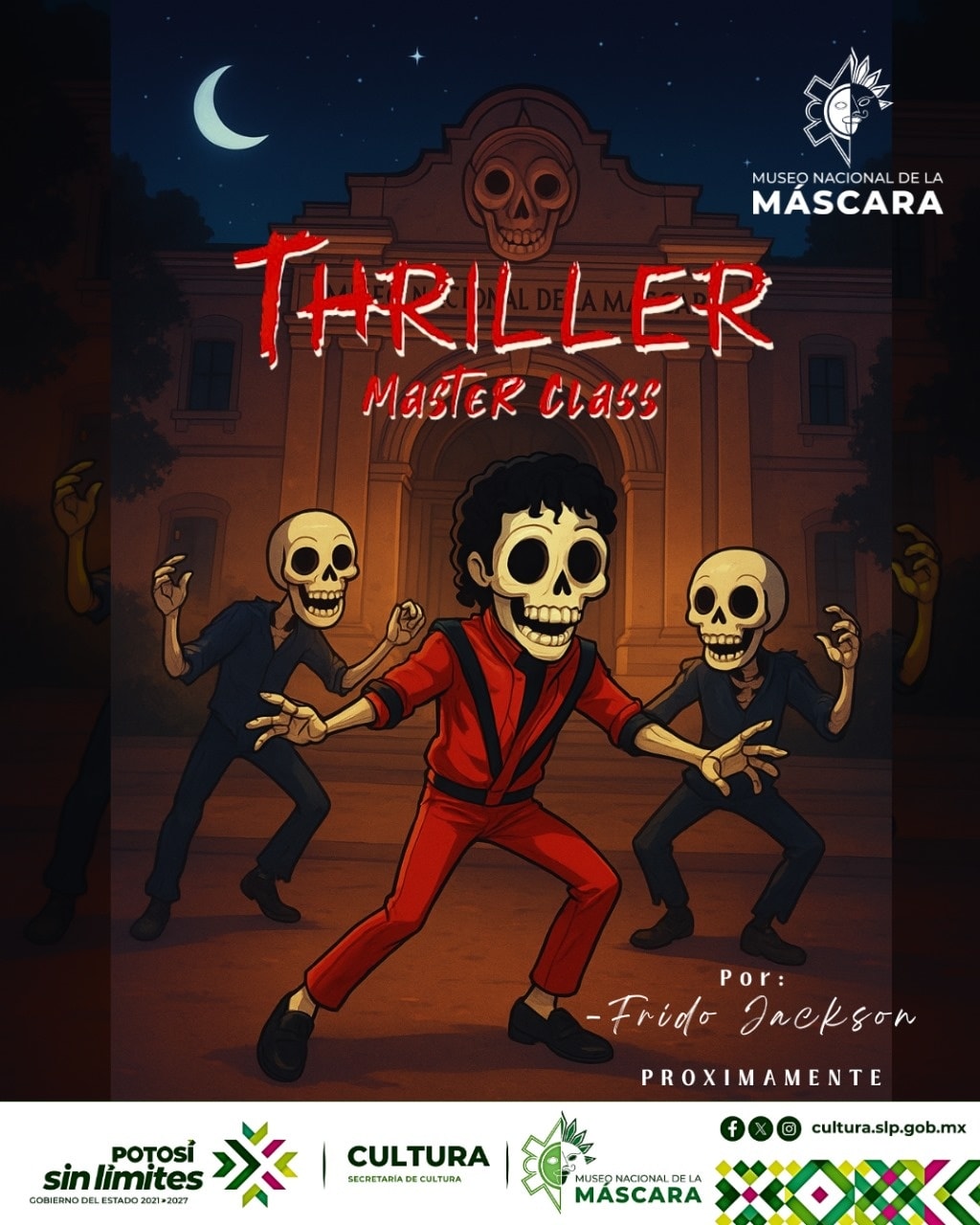 El Museo Nacional de la Máscara te invita a celebrar los 43 años del icónico éxito mundial de Michael Jackson con una increíble Master Class de “Thriller”, dirigida por el Mtro. Frido Tobías y su equipo. 🎭✨