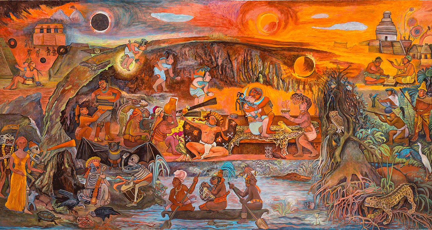 A su regreso a la Ciudad de México en 1964, dedicó dos años a plasmar los murales al fresco en el templo facsímil del museo, ubicado junto a la sala maya. Su trabajo no solo es una réplica artística, sino también un testimonio de valentía y pasión por la cultura mesoamericana.