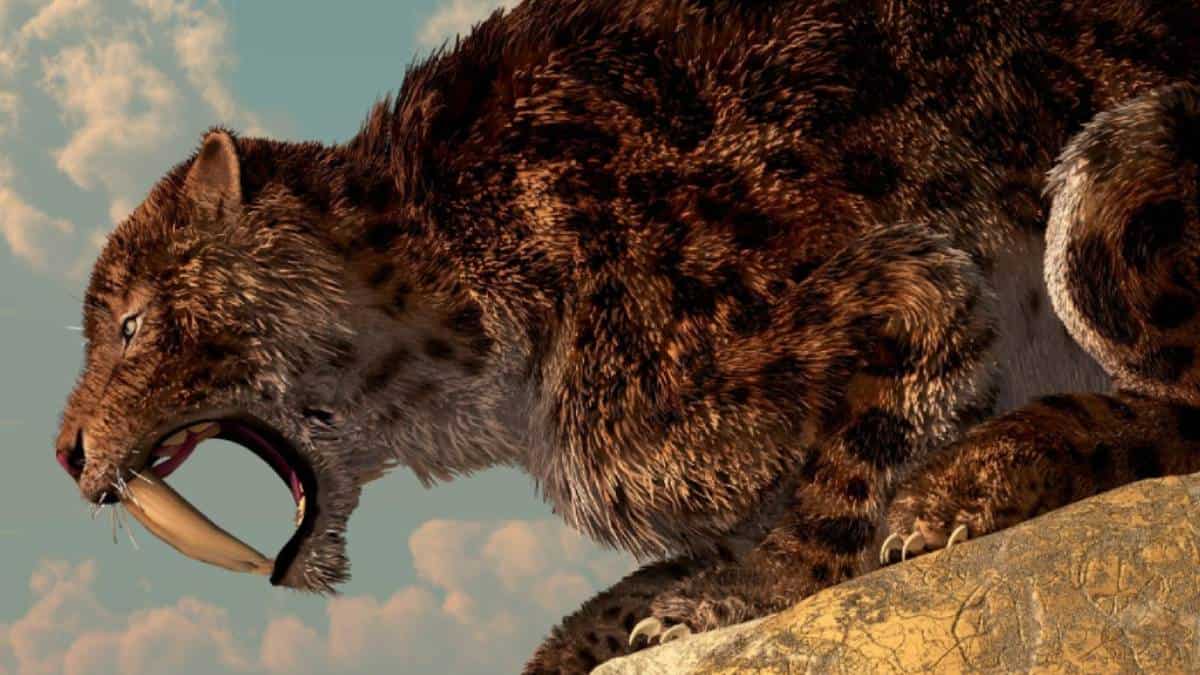 Otro protagonista fue el tigre dientes de sable, depredador de colmillos curvados que podían medir más de 20 centímetros. Su poderosa mandíbula lo convertía en uno de los cazadores más temidos, capaz de abatir presas de gran tamaño en las extensas praderas heladas.