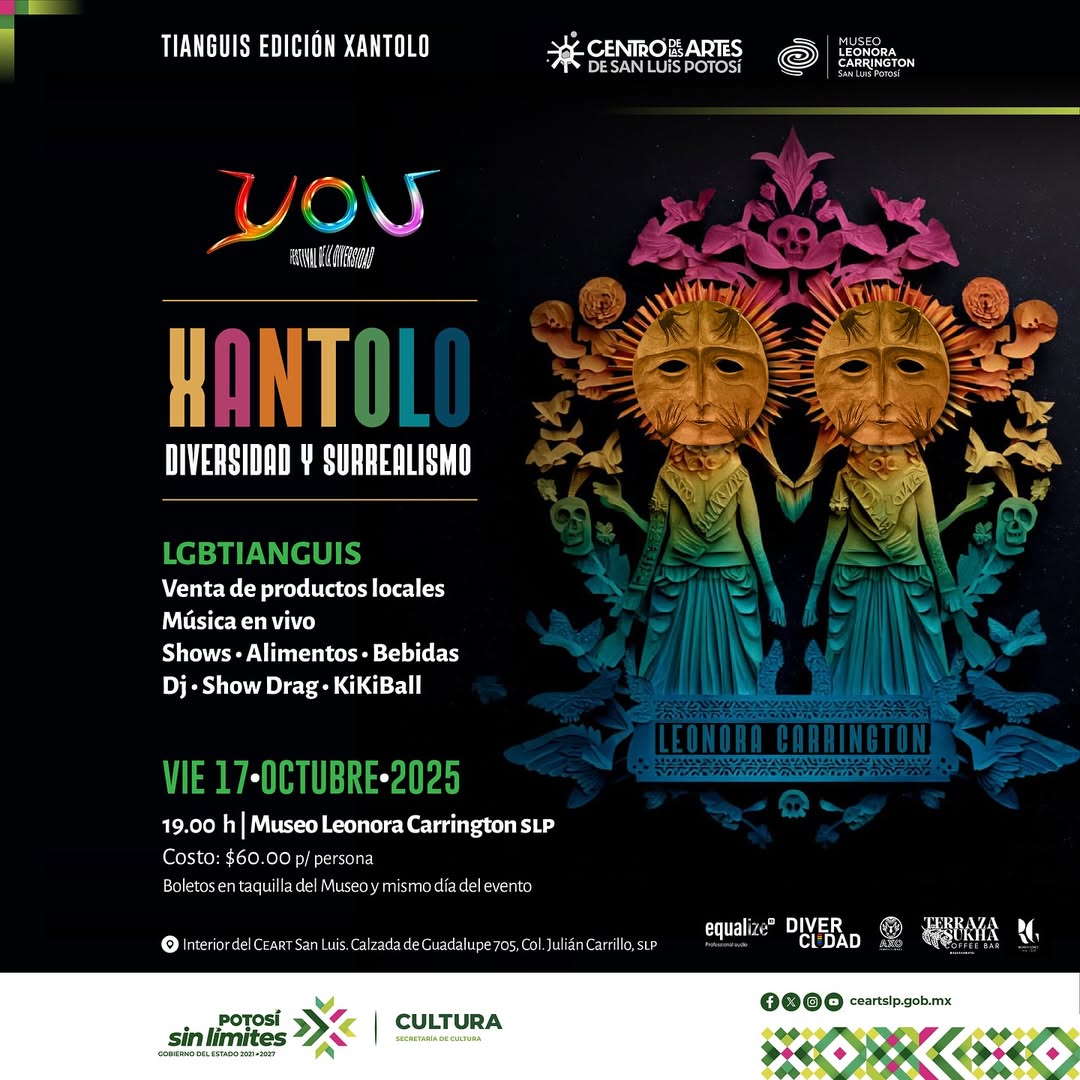 El próximo viernes 17 de octubre, el Museo Leonora Carrington en San Luis Potosí será el escenario de , edición especial XANTOLO, un evento que combina arte, cultura y entretenimiento para toda la familia. Con inicio a las 19:00 horas, el festival promete una experiencia única donde los asistentes podrán disfrutar de un ambiente lleno de colores, música, gastronomía y performances.